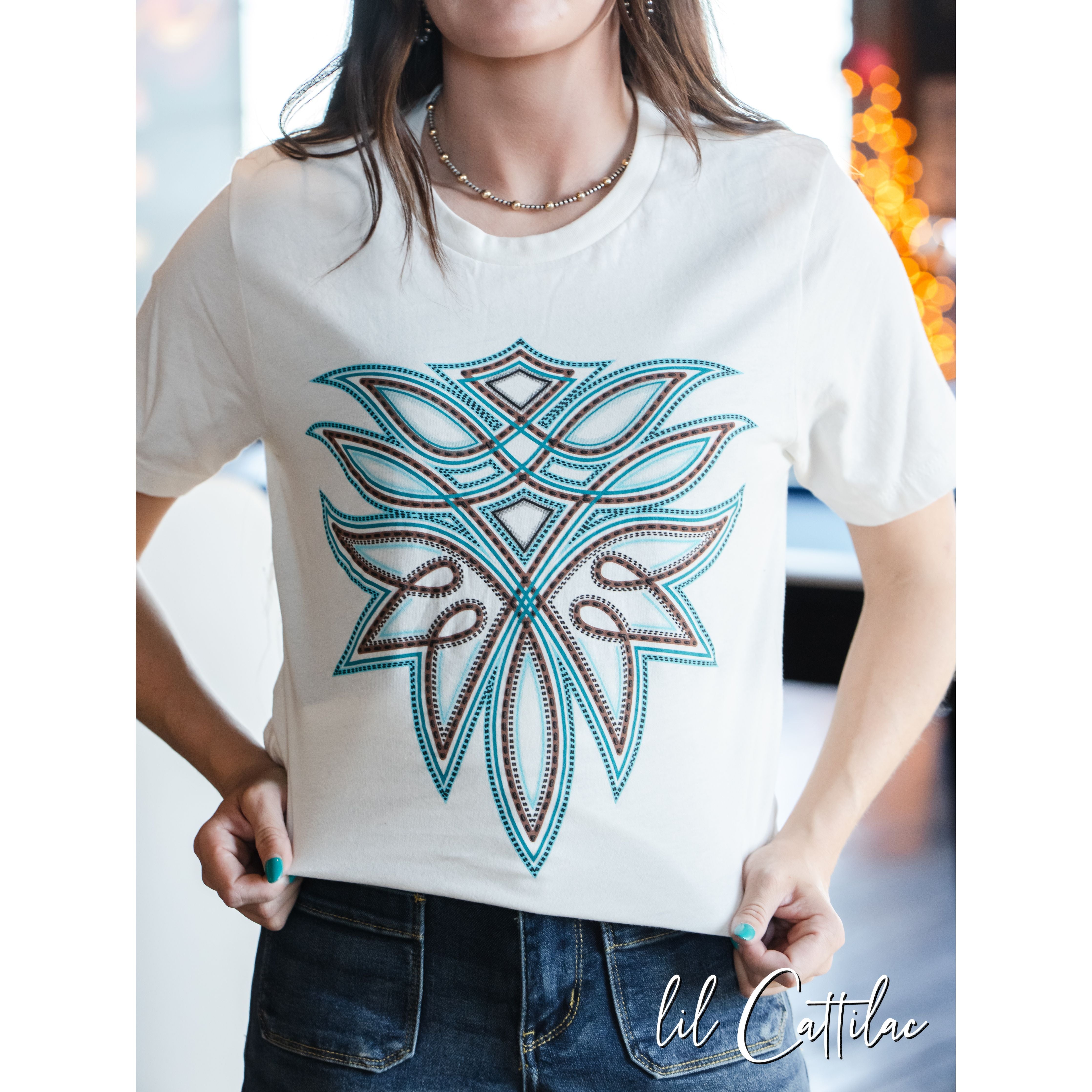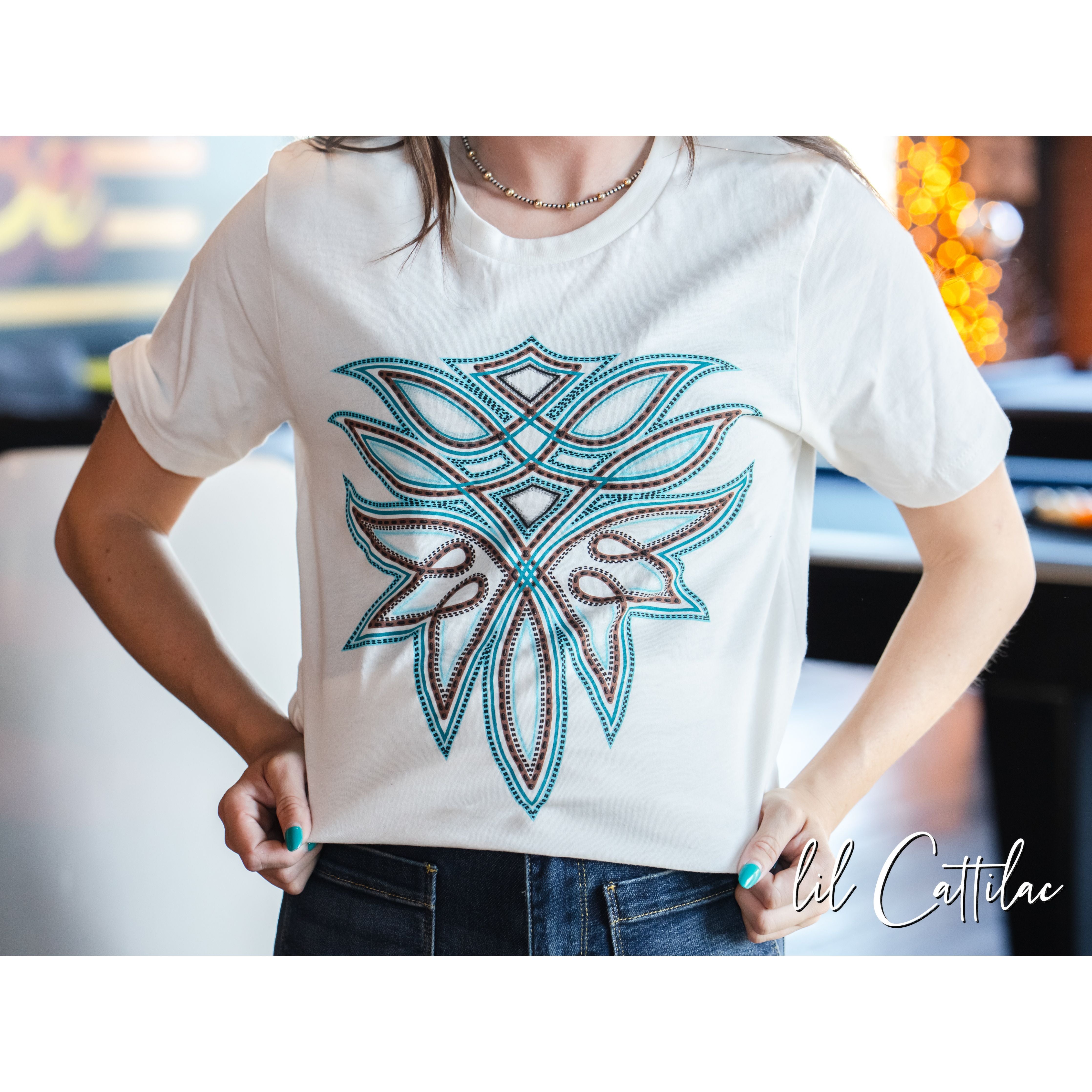 Boot Stitch on Vintage White - Western Tee