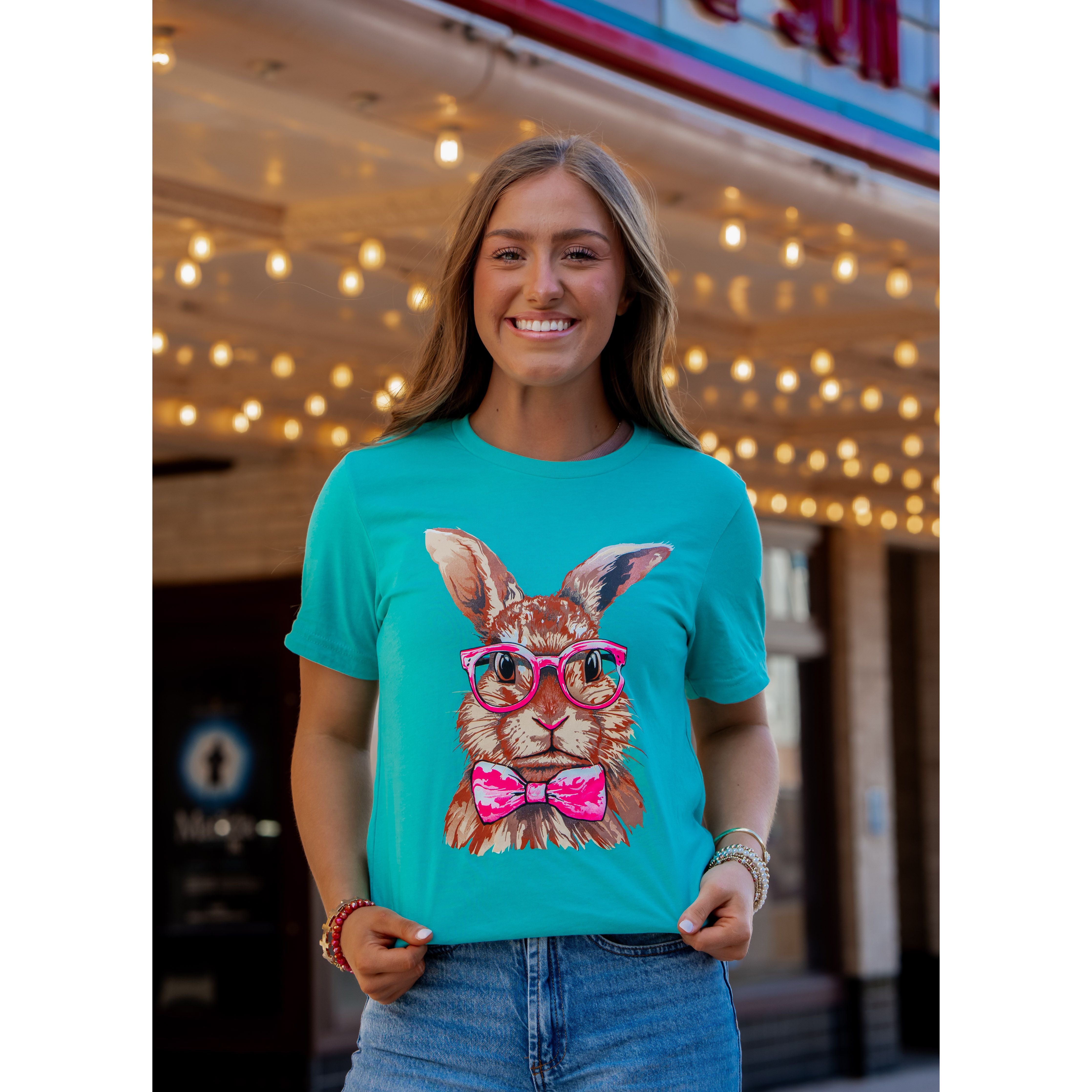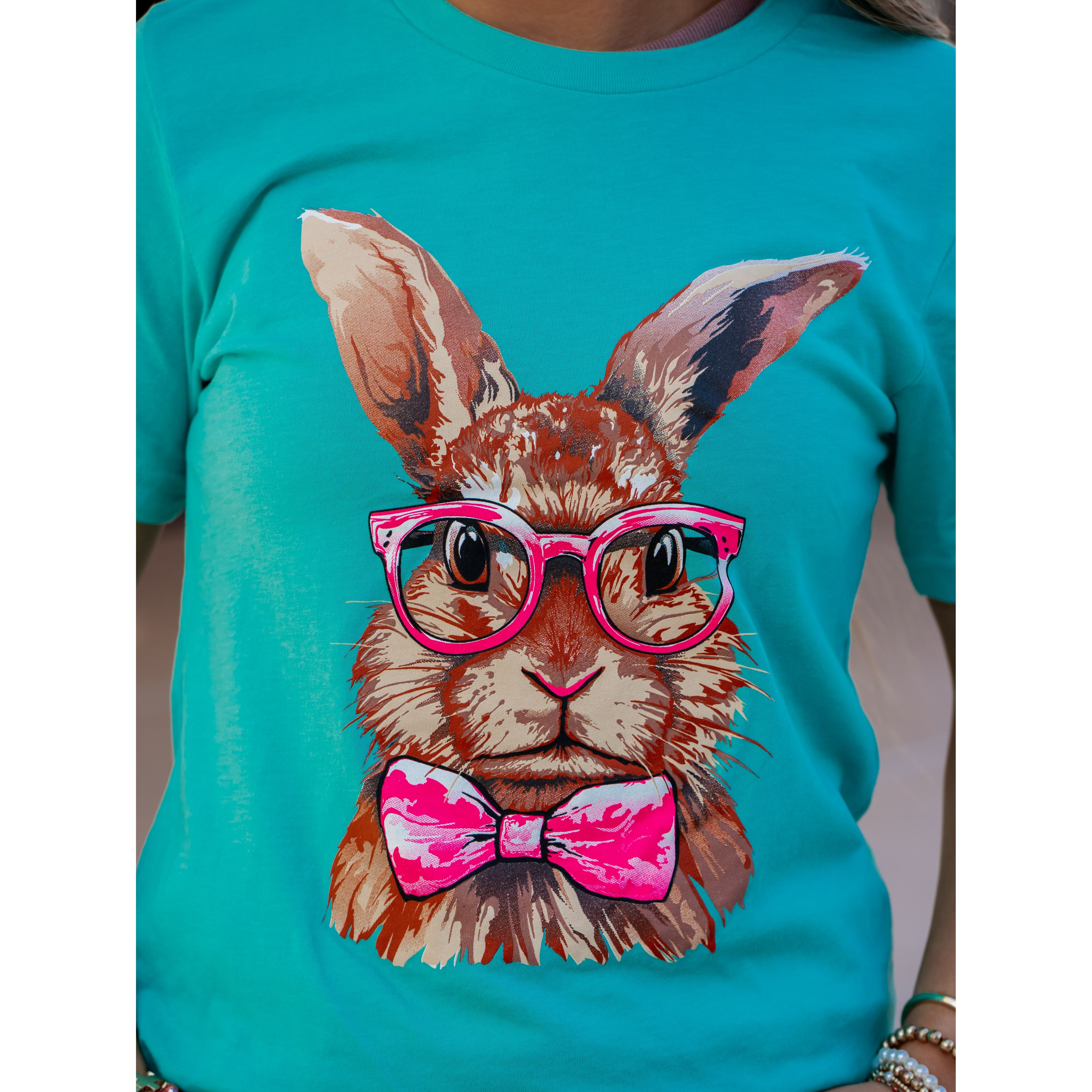 Hoppy Easter in style! This adorable Rabbit With Glasses graphic tee is perfect for celebrating Easter with a trendy twist. Featuring a cute bunny wearing sunglasses and a bow tie, this tee combines Easter charm with cool, fashionable vibes.