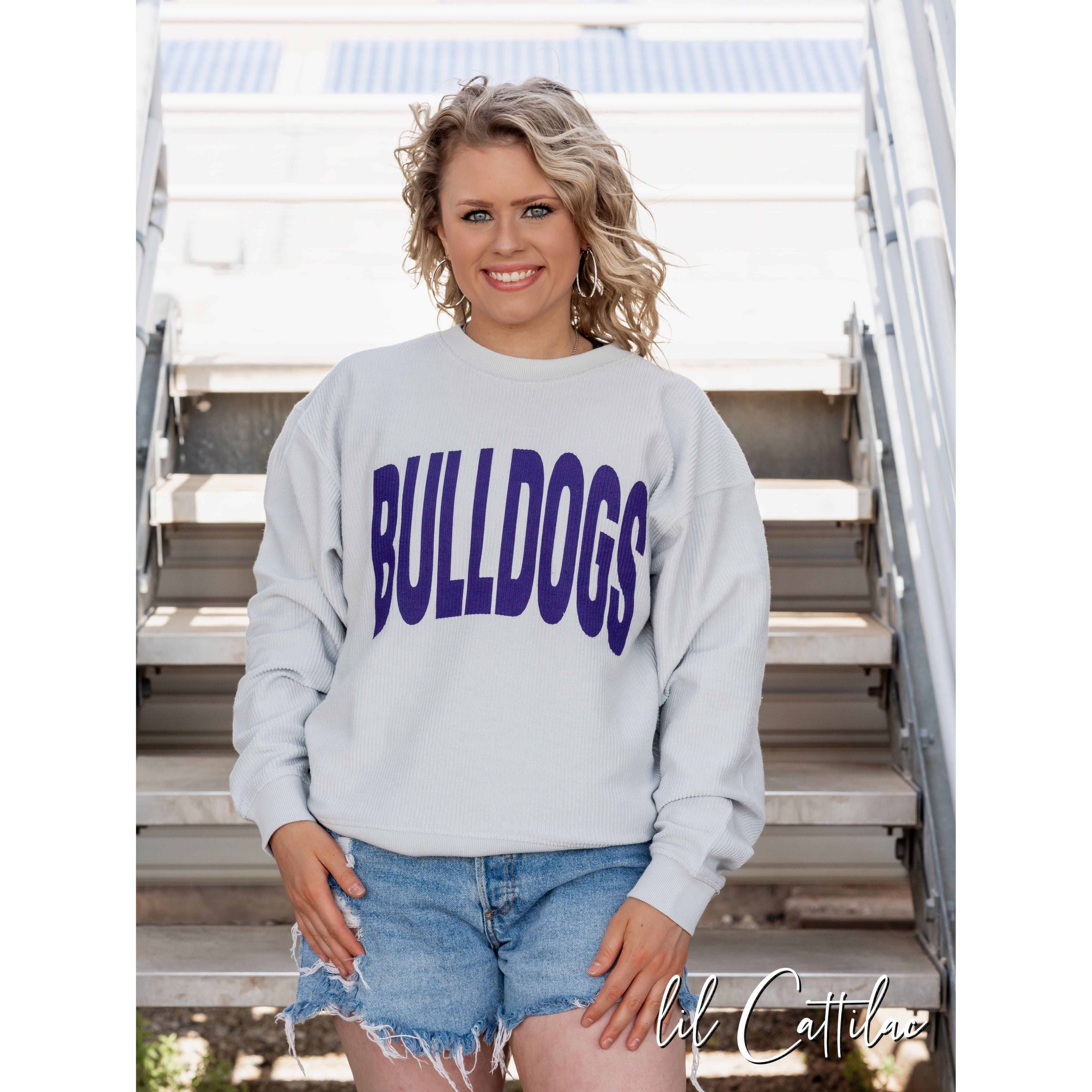 Light Grey Corded Sweatshirt.  Slit bottom.  Includes CUSTOM lettering.  Comes in a Pack of 12 (23331 S-2X)