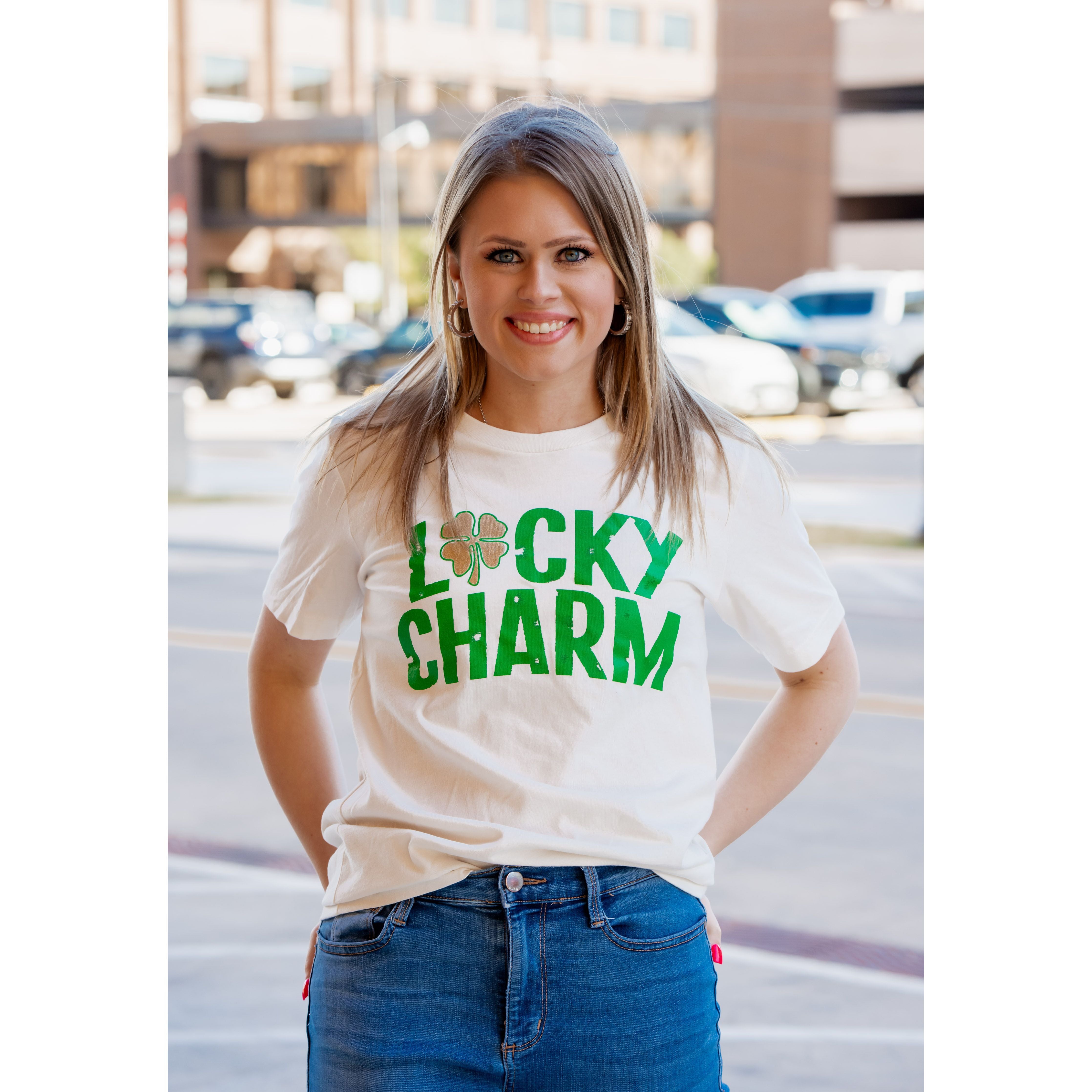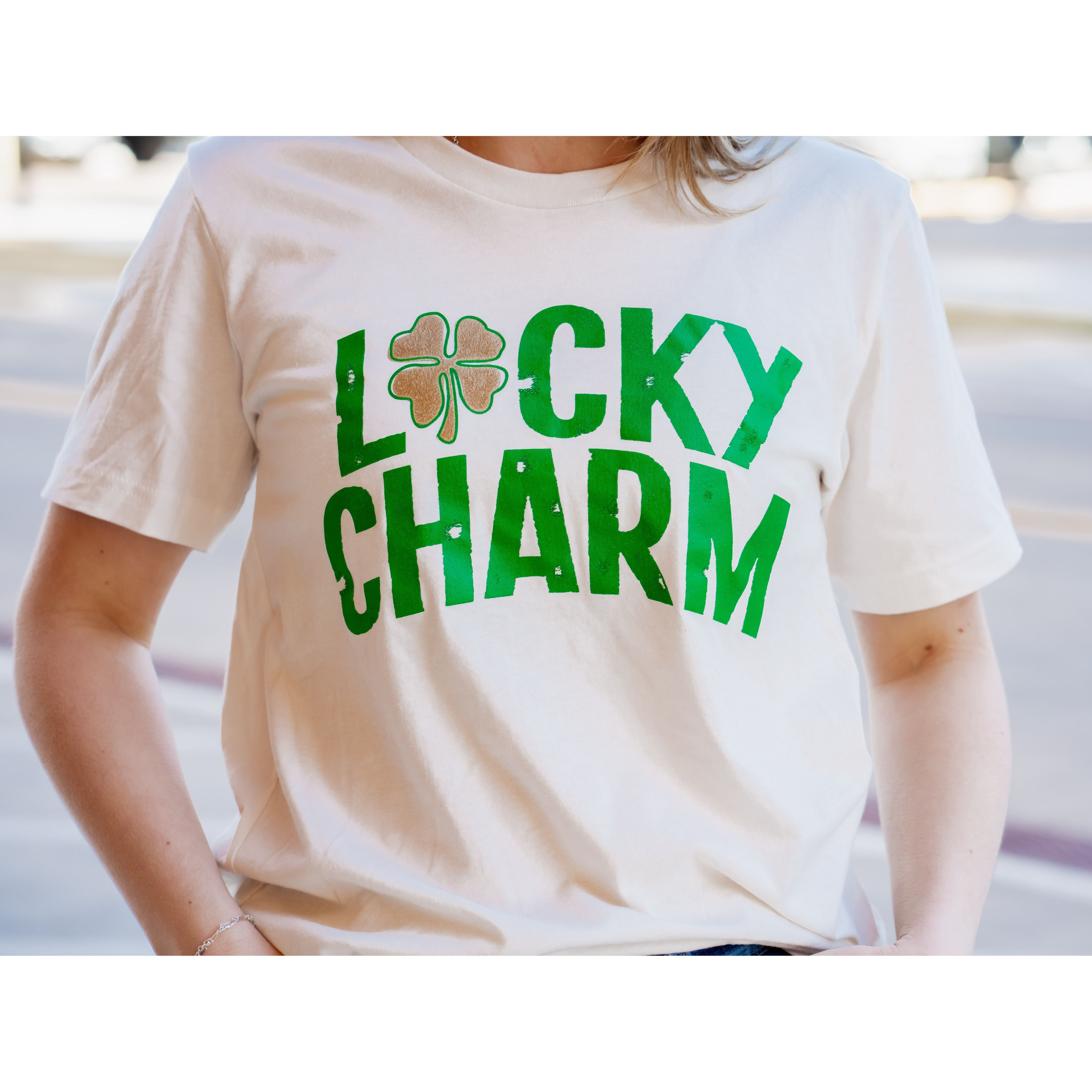 You're my lucky charm! Celebrate St. Patrick's Day in style with this sweet and festive graphic tee! Featuring a beautiful shamrock clover design with the heartfelt message "You're My Lucky Charm," this tee is perfect for showing off your Irish spirit and spreading the love.