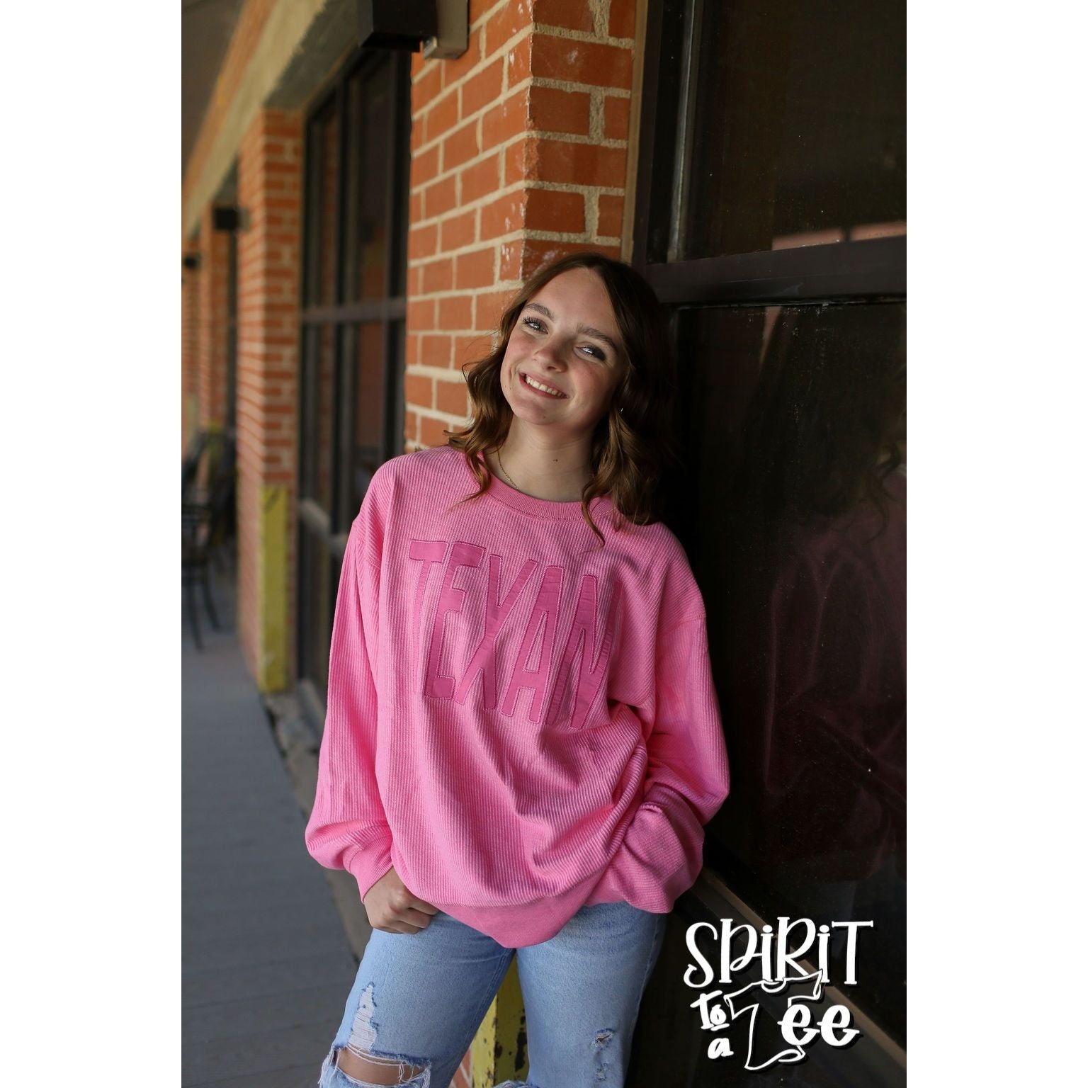 • Shown on a Power Pink Cozycord Crewneck w/ Side Slits