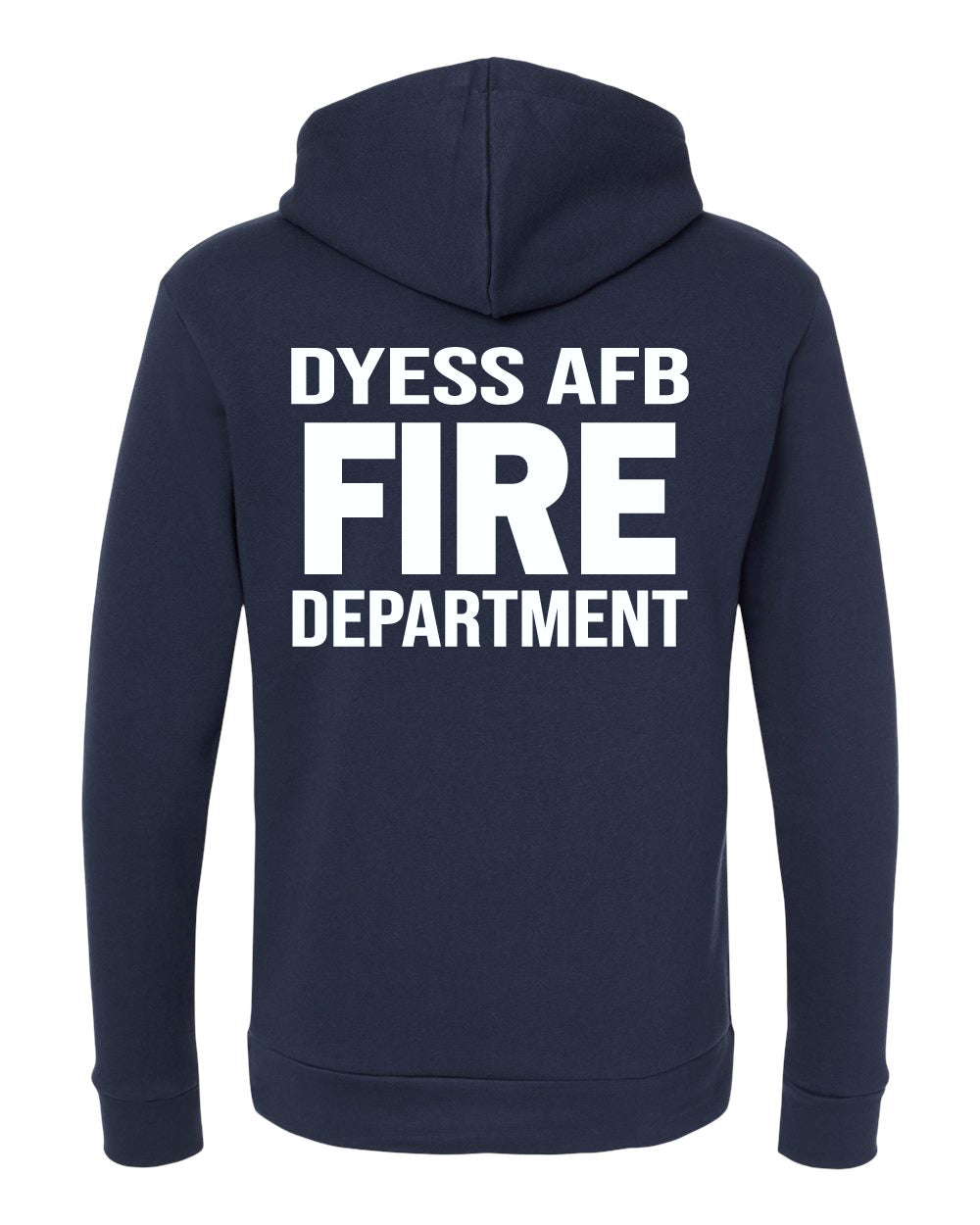 This is a Pre-Order! Grab a Dyess Firefighters Association lightweight hoodie today! 2 colors of shirts to choose from Black or Midnight Navy. White print on the left chest and full back.