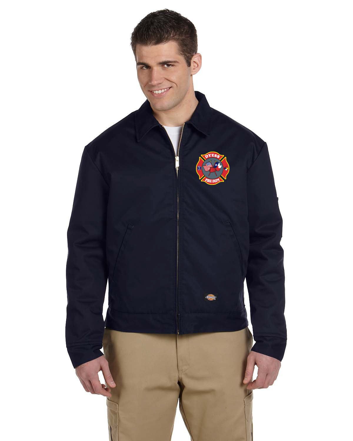 This is a Pre-Order! Grab a Dyess Firefighters Association lined Eisenhower jacket today! 2 colors of jackets to choose from Black or Midnight Navy. Full color monogram on left. Name and rank on the right chest in white.