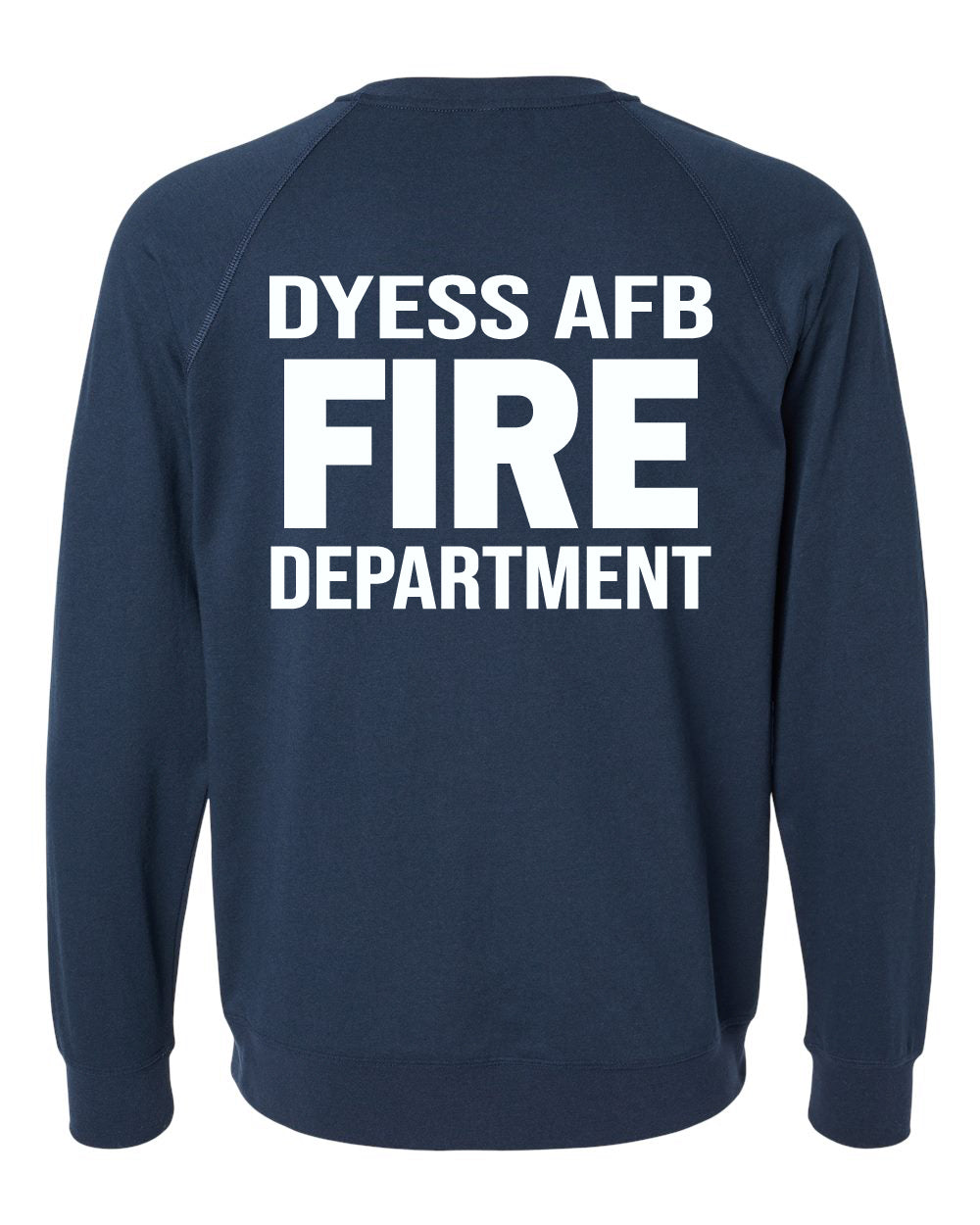 This is a Pre-Order! Grab a Dyess Firefighters Association lightweight crew neck sweatshirt today! 2 colors of shirts to choose from Black or Midnight Navy. White print on the left chest and full back.