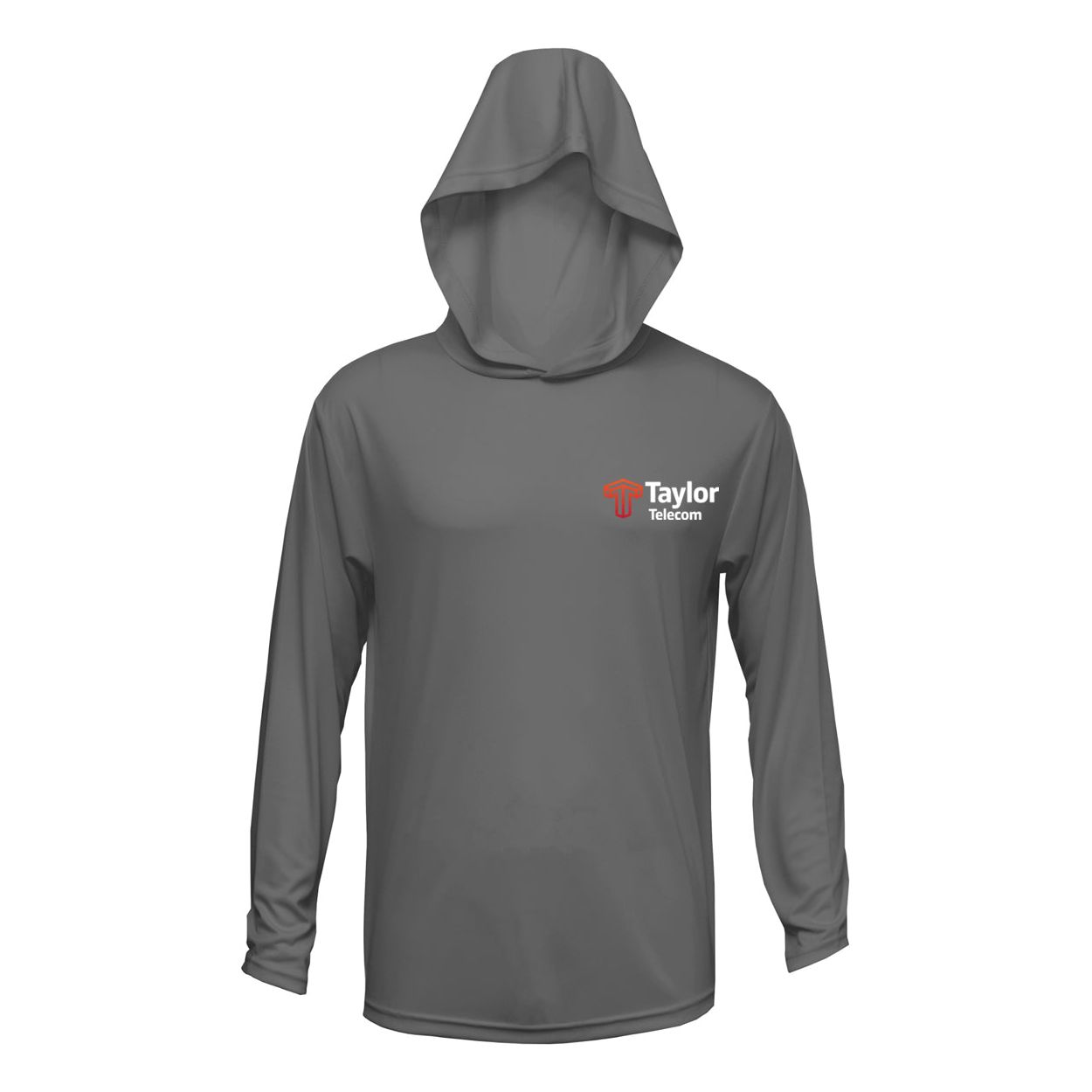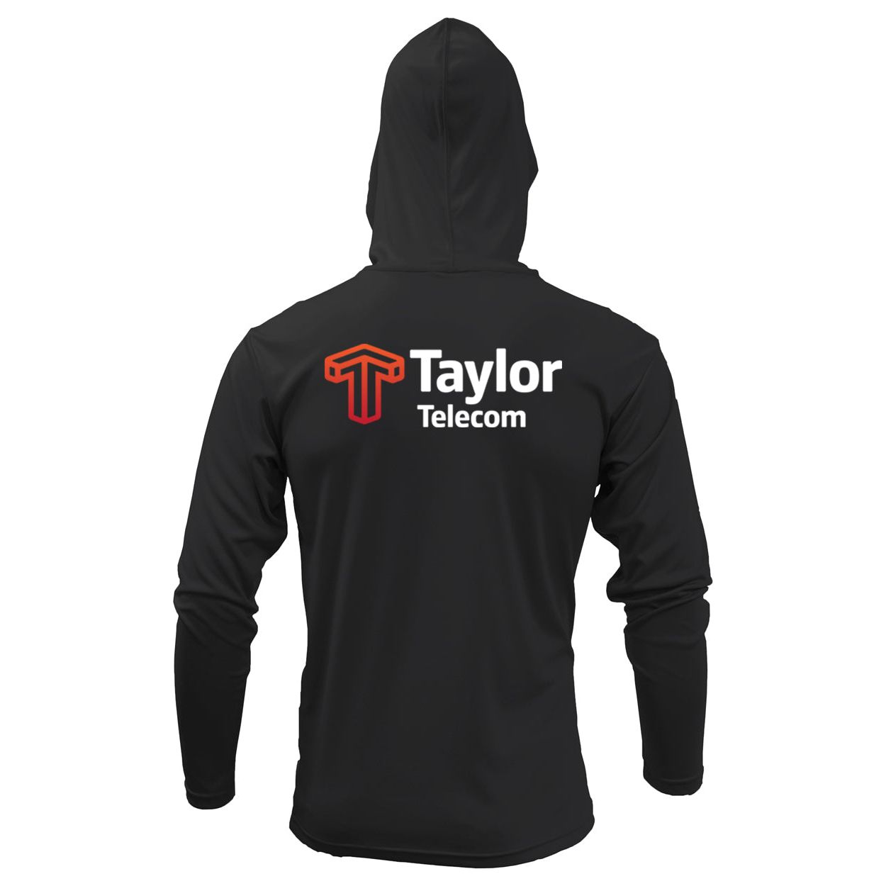 Taylor Telecom BAW X-Treme Long-Sleeve Hooded Tee with Taylor Telecom logo screen printed on the left chest and full back. Available in 3 colors.