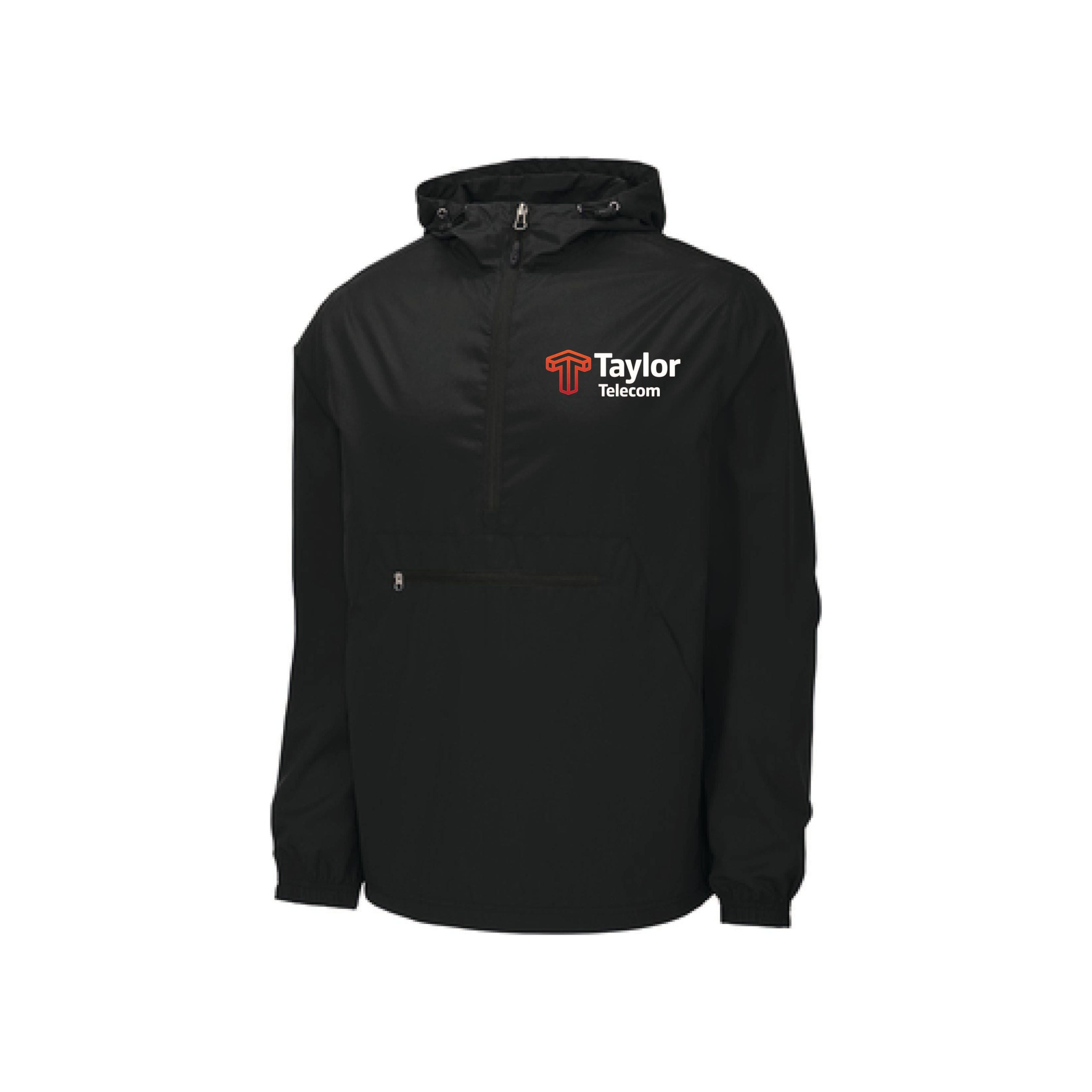 Taylor Telecom Sport-Tek® Packable Anorak Wind Jacket in Black with Taylor Telecom logo monogrammed on the left chest.