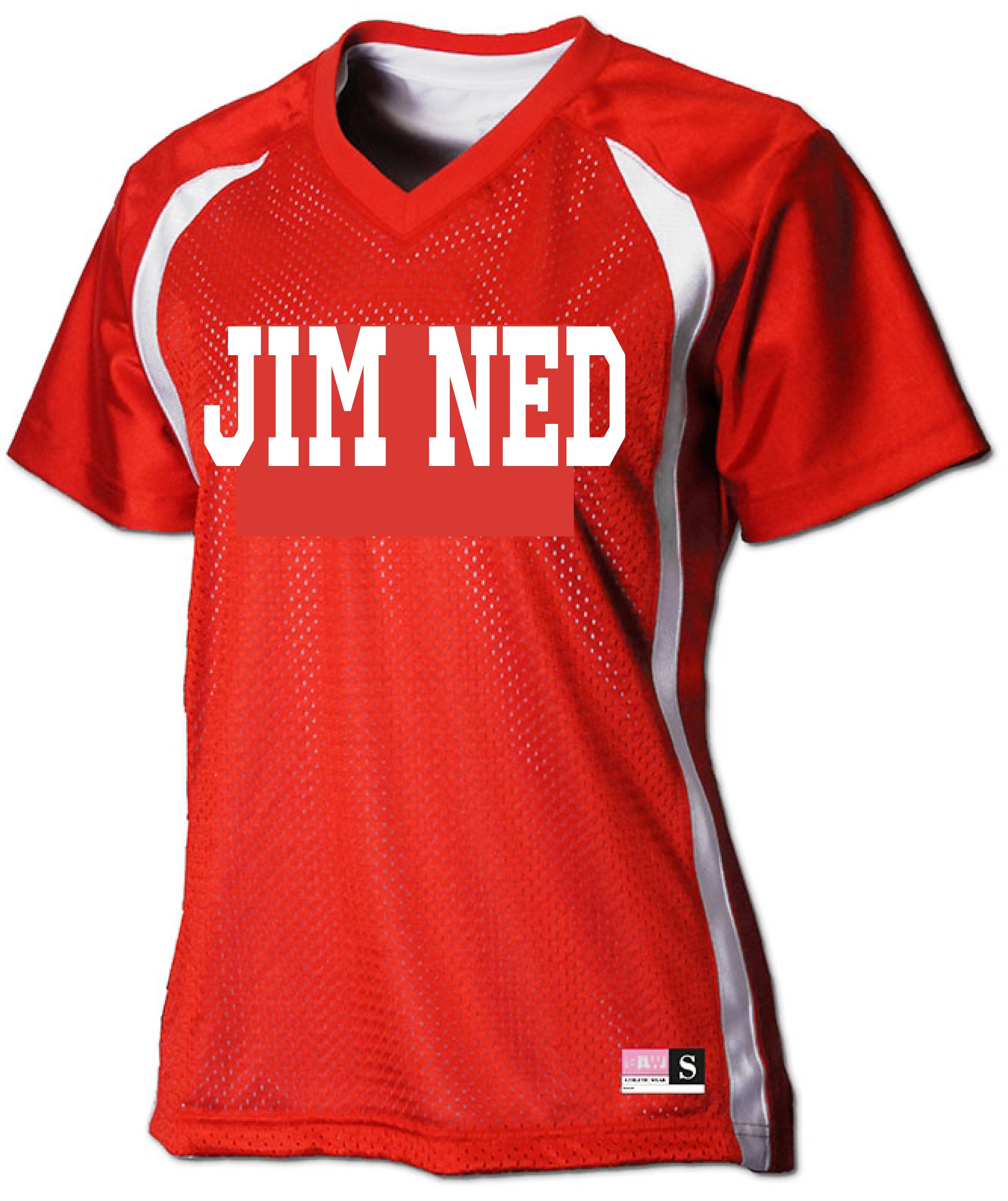 Show your spirit on the sidelines this season with a Jim Ned Indians ladies fit football jersey. Red with White Stripe down the side. Jim Ned on the front in White. We can Customize them too!