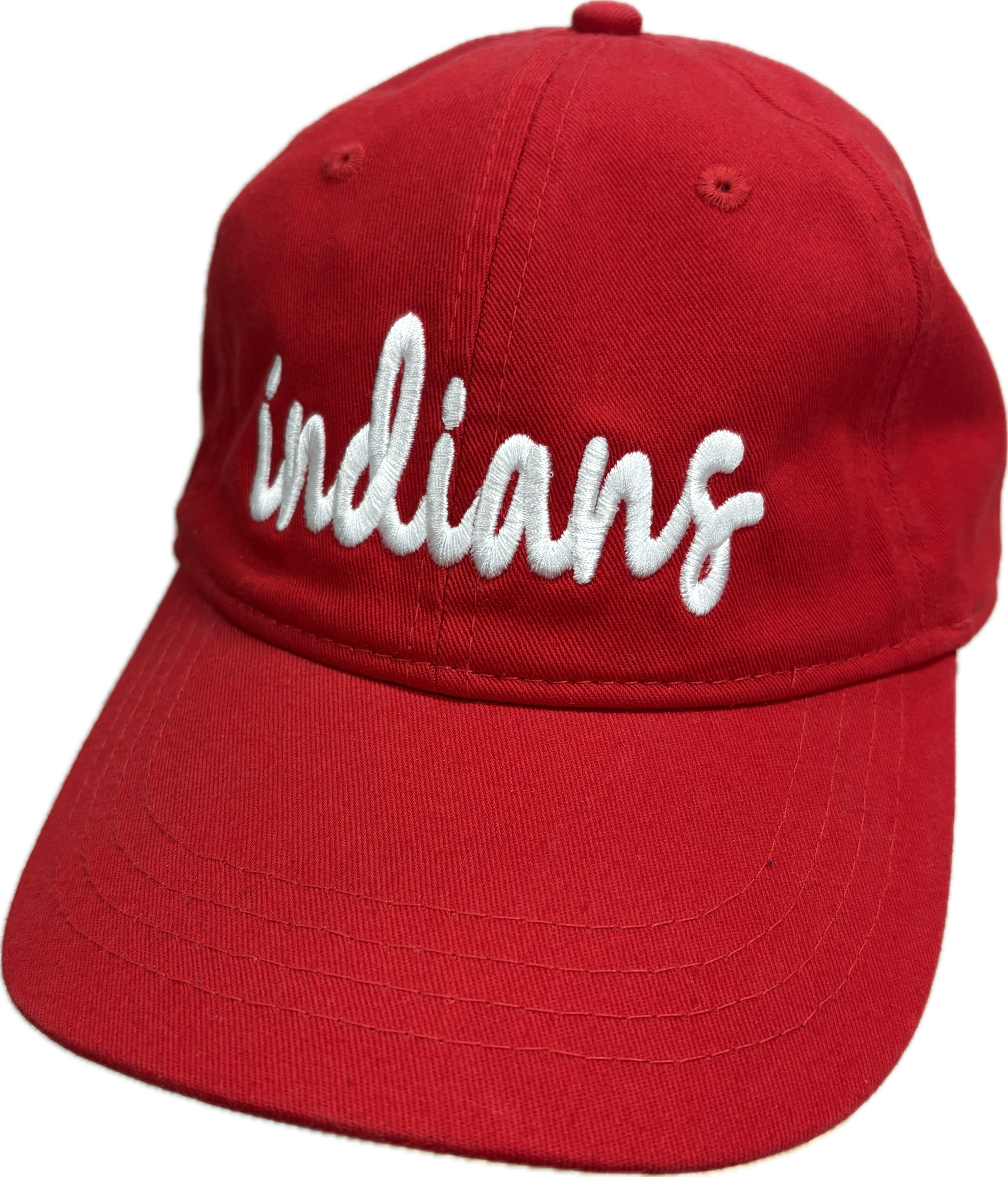 Show your spirit in this Indians stitched in white on a Cotton Unstructured Cap!