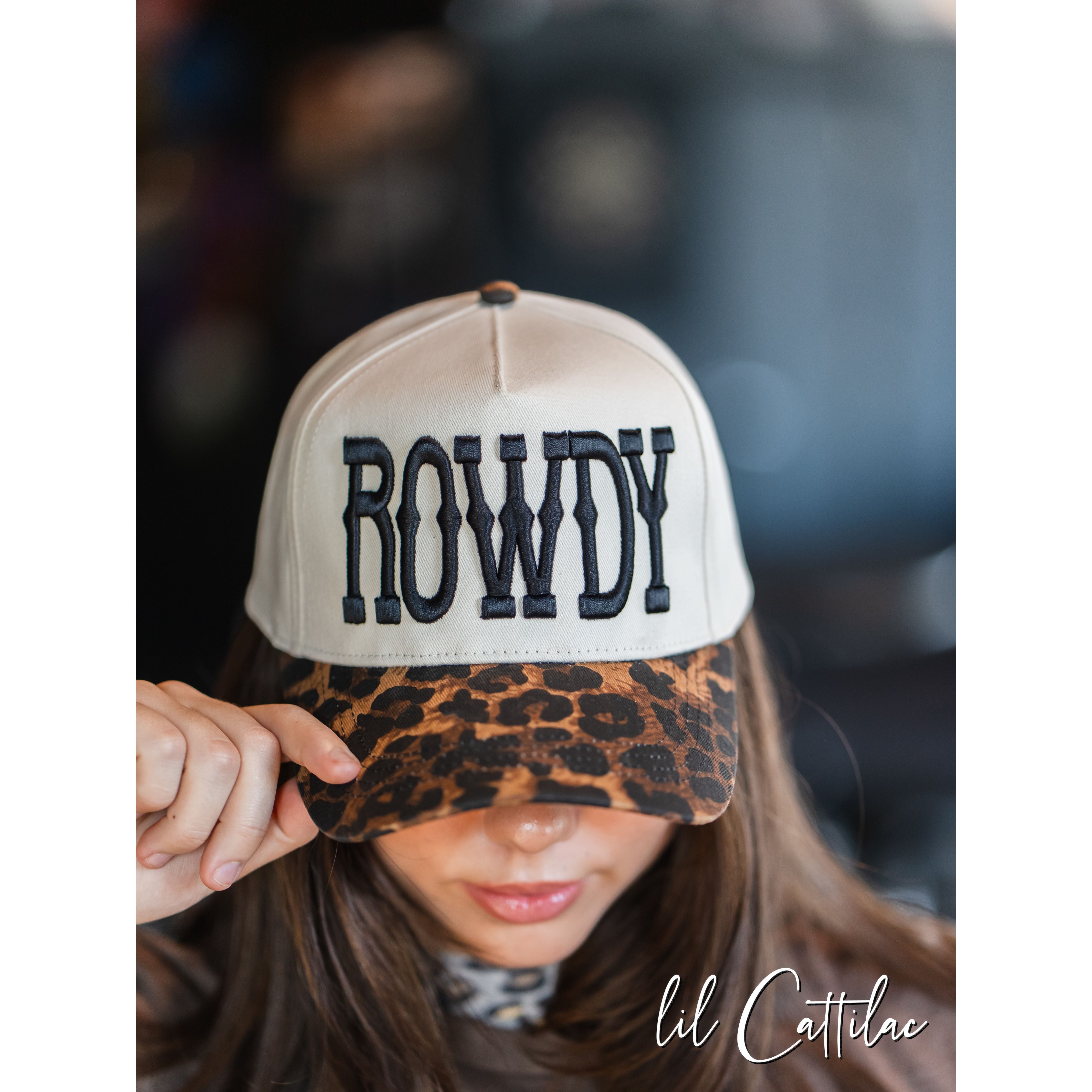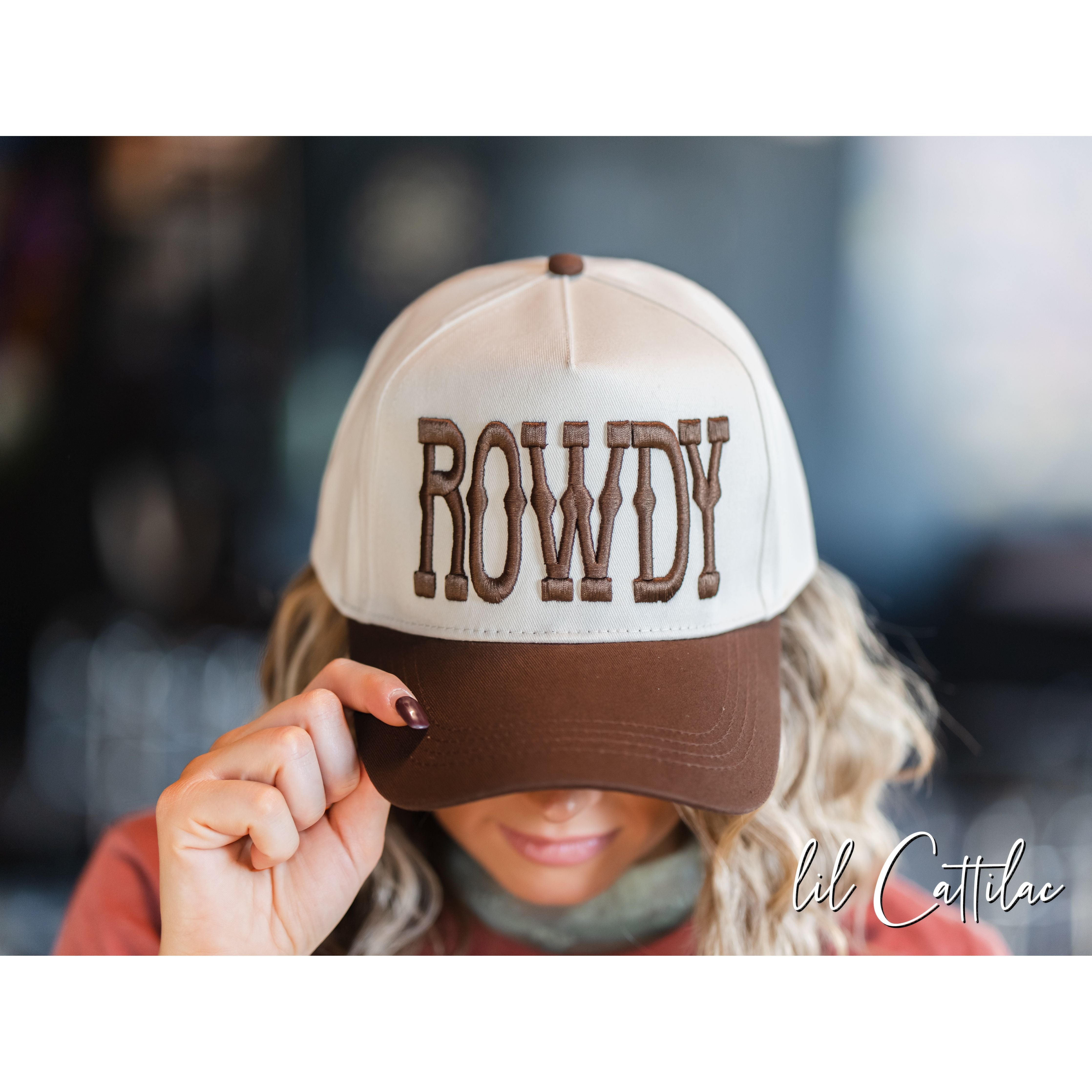 Accessorize any outfit with a Rowdy stitched with puff on a Trucker Cap! The 3D embroidery makes it so fun.