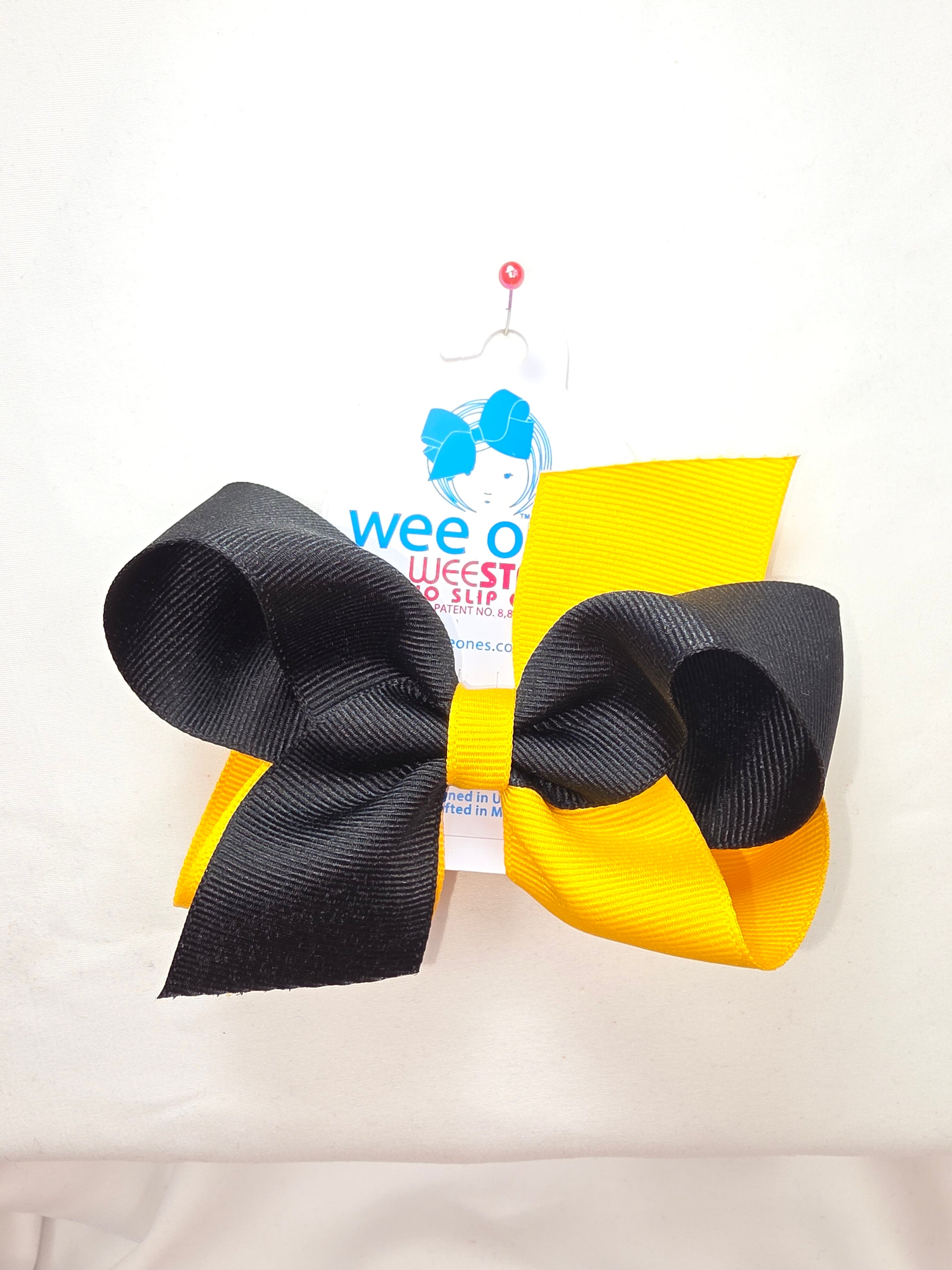 Show your team spirit by wearing this Game Day colored hair bow from our Game Day Collection. This two-tone grosgrain hair bow is perfect for girls of all ages and is sure to stay in her hair all day with our patented WeeStay™ no-slip hair clip.