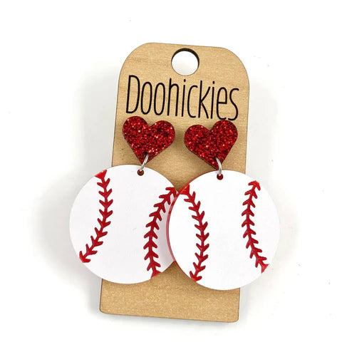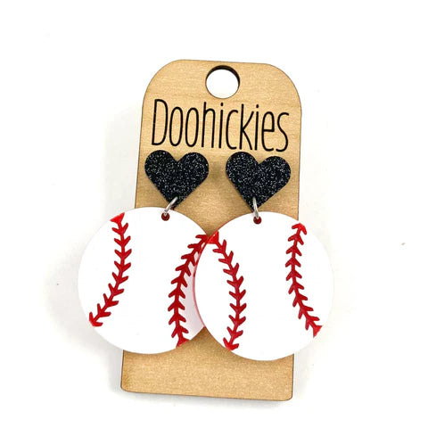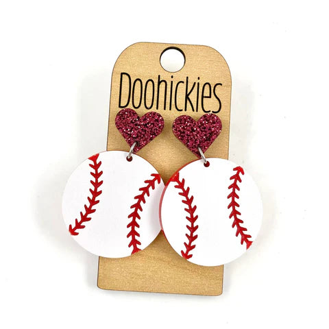 Baseball with Heart Dangle Earrings