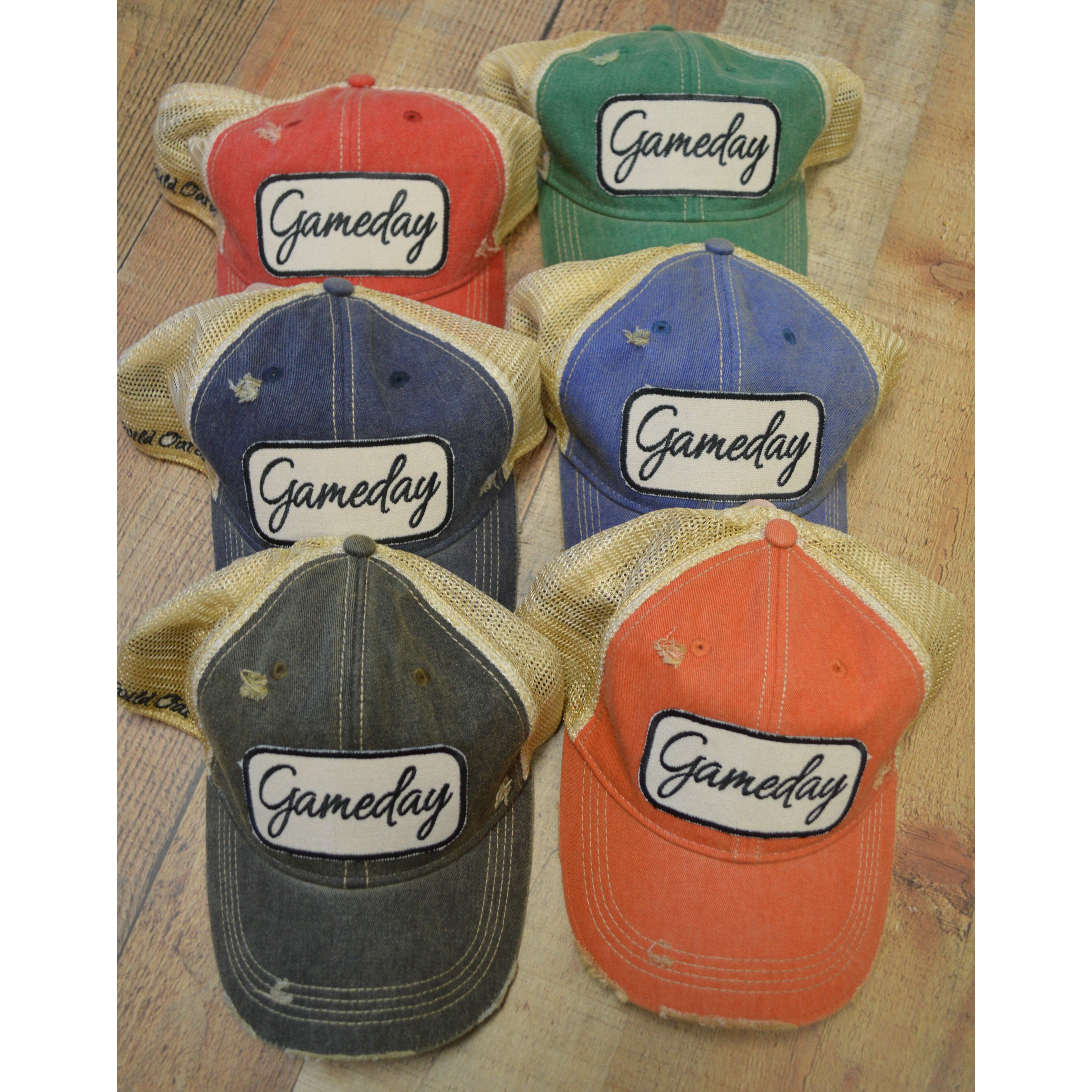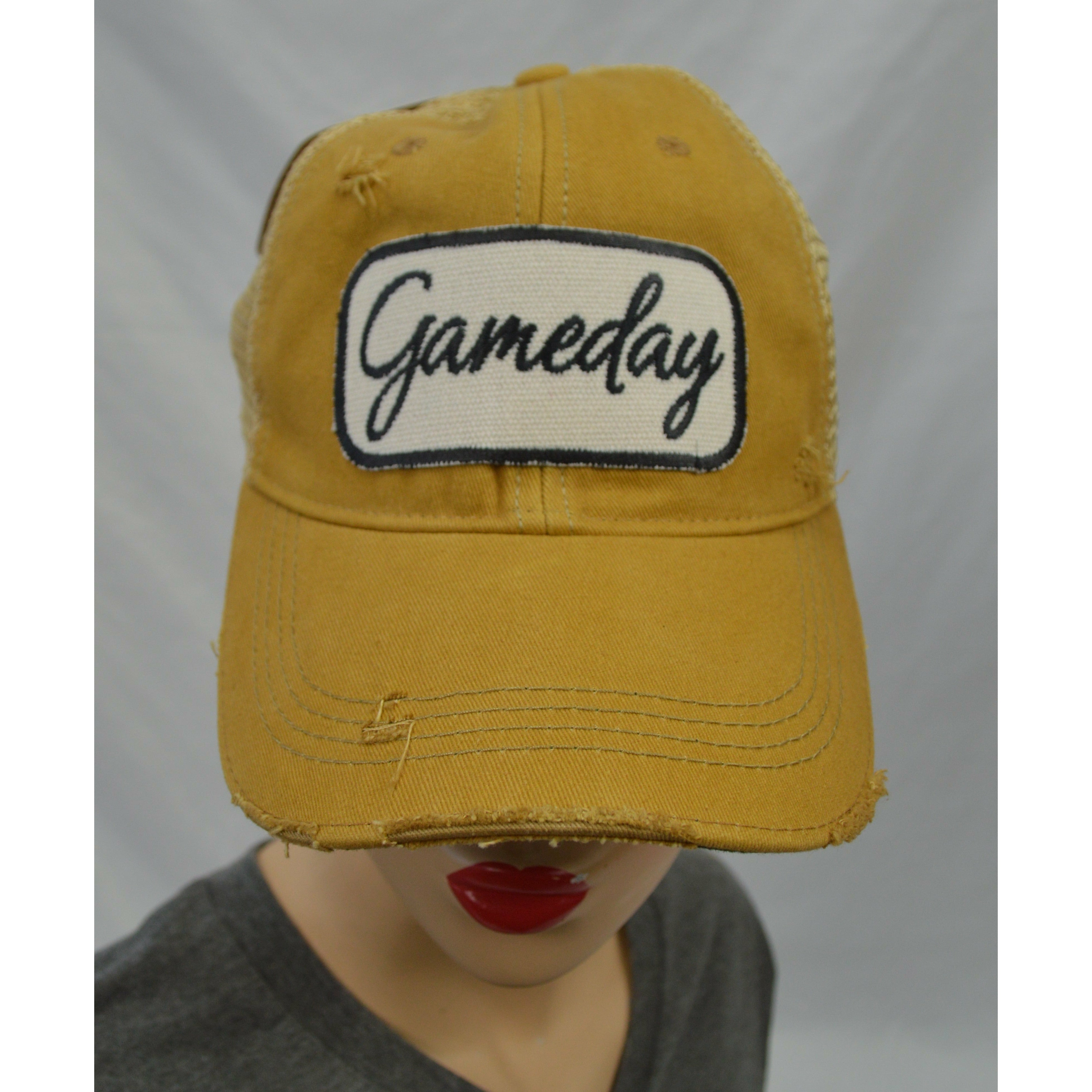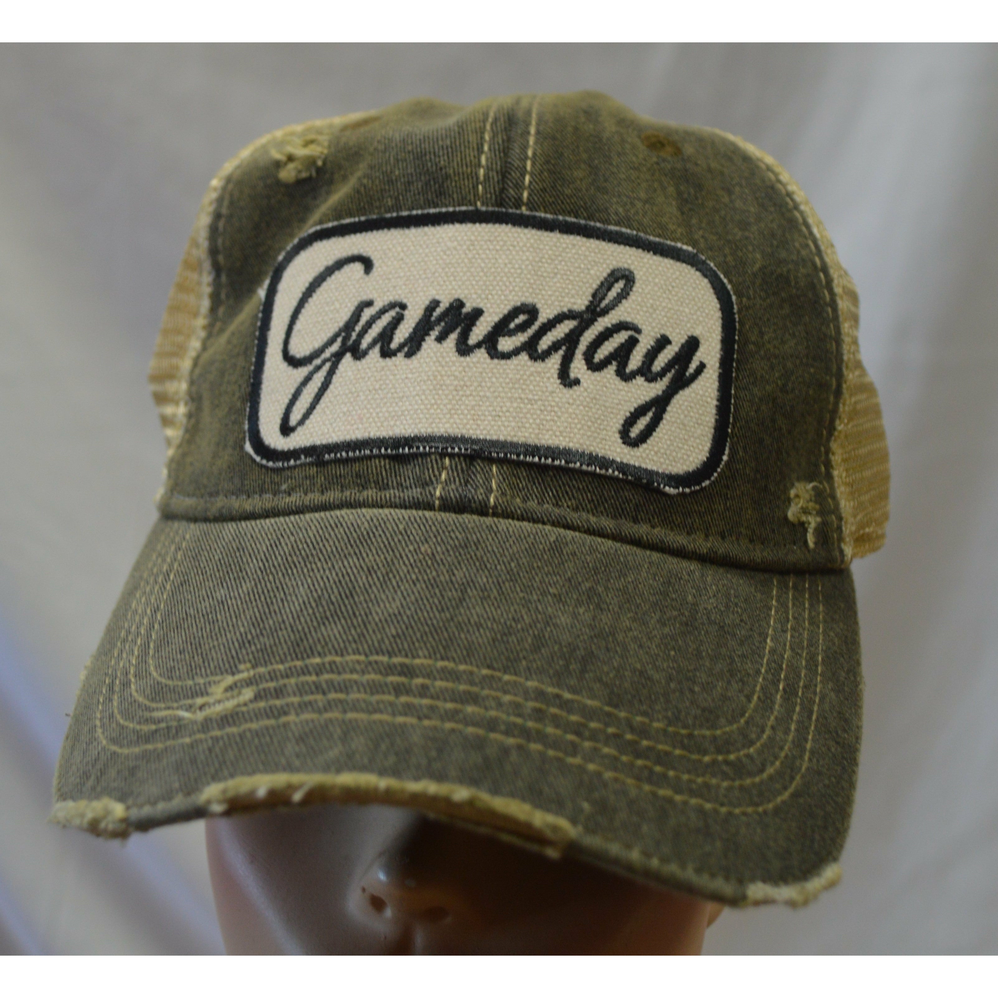 Show your spirit in this Game Day distressed Mesh Cap!  The embroidered patch makes it so fun.