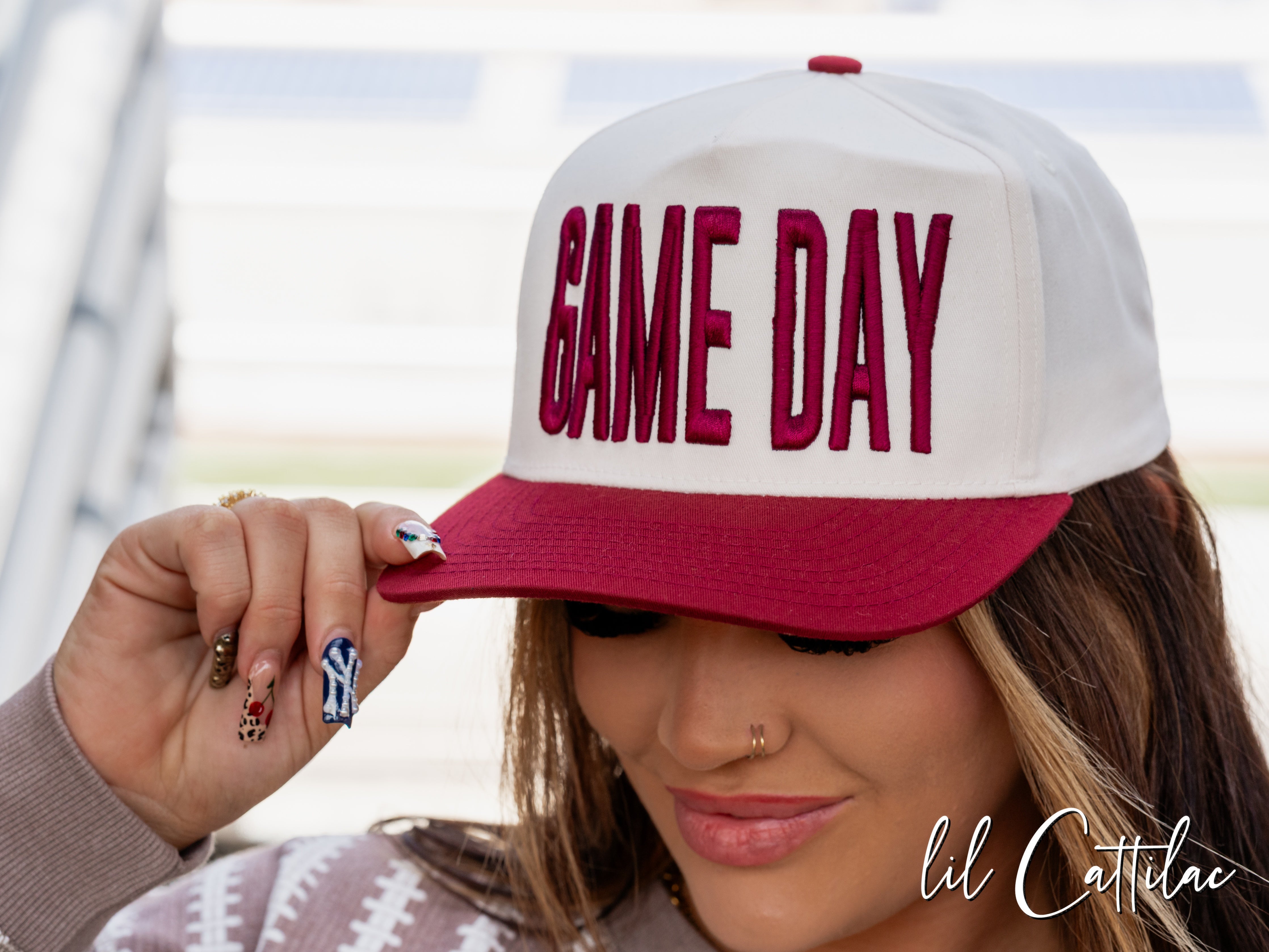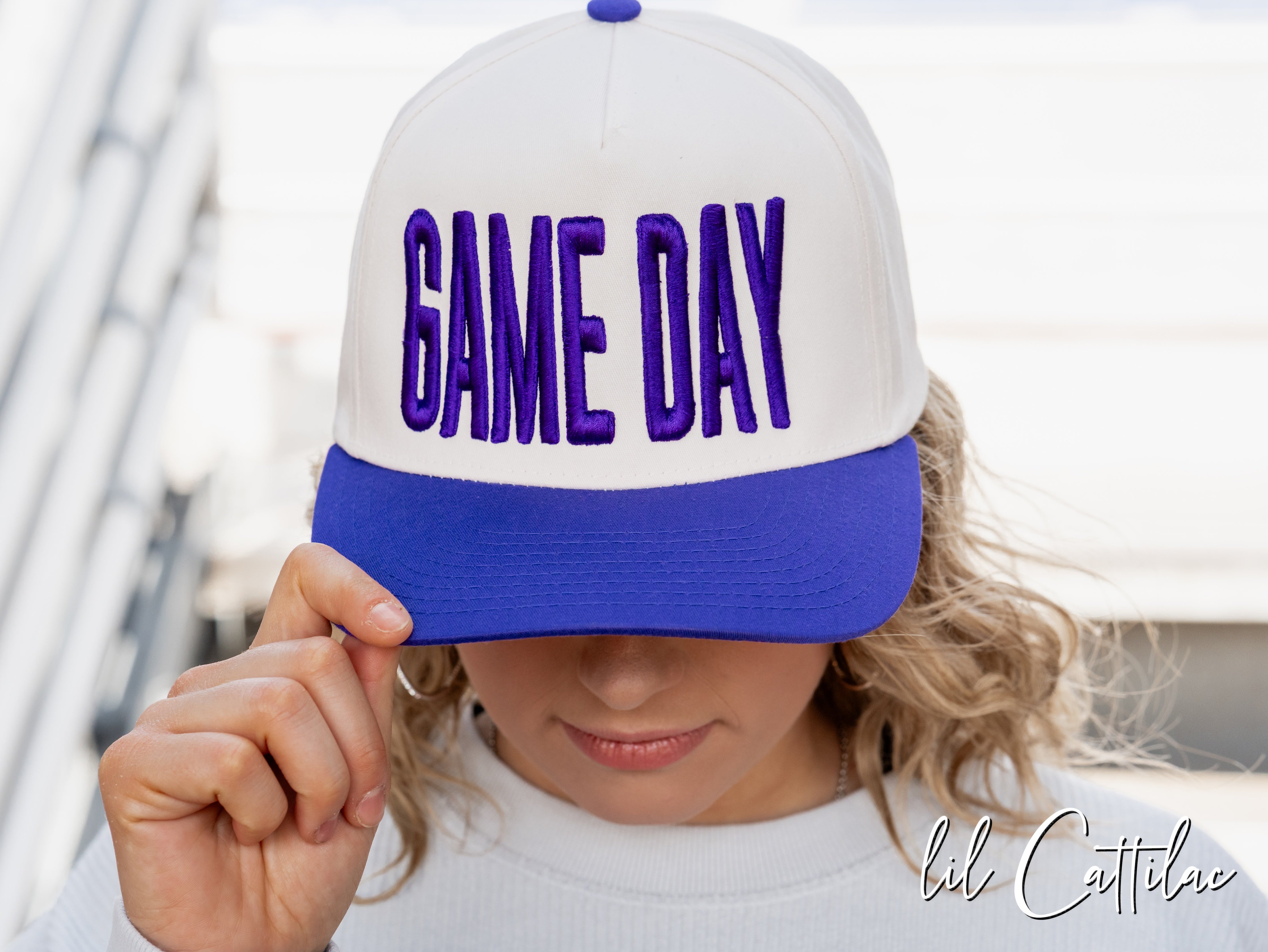 Show your spirit in this Game Day stitched with puff on a 2-Tone Trucker Cap! The 3D embroidery makes it so fun.