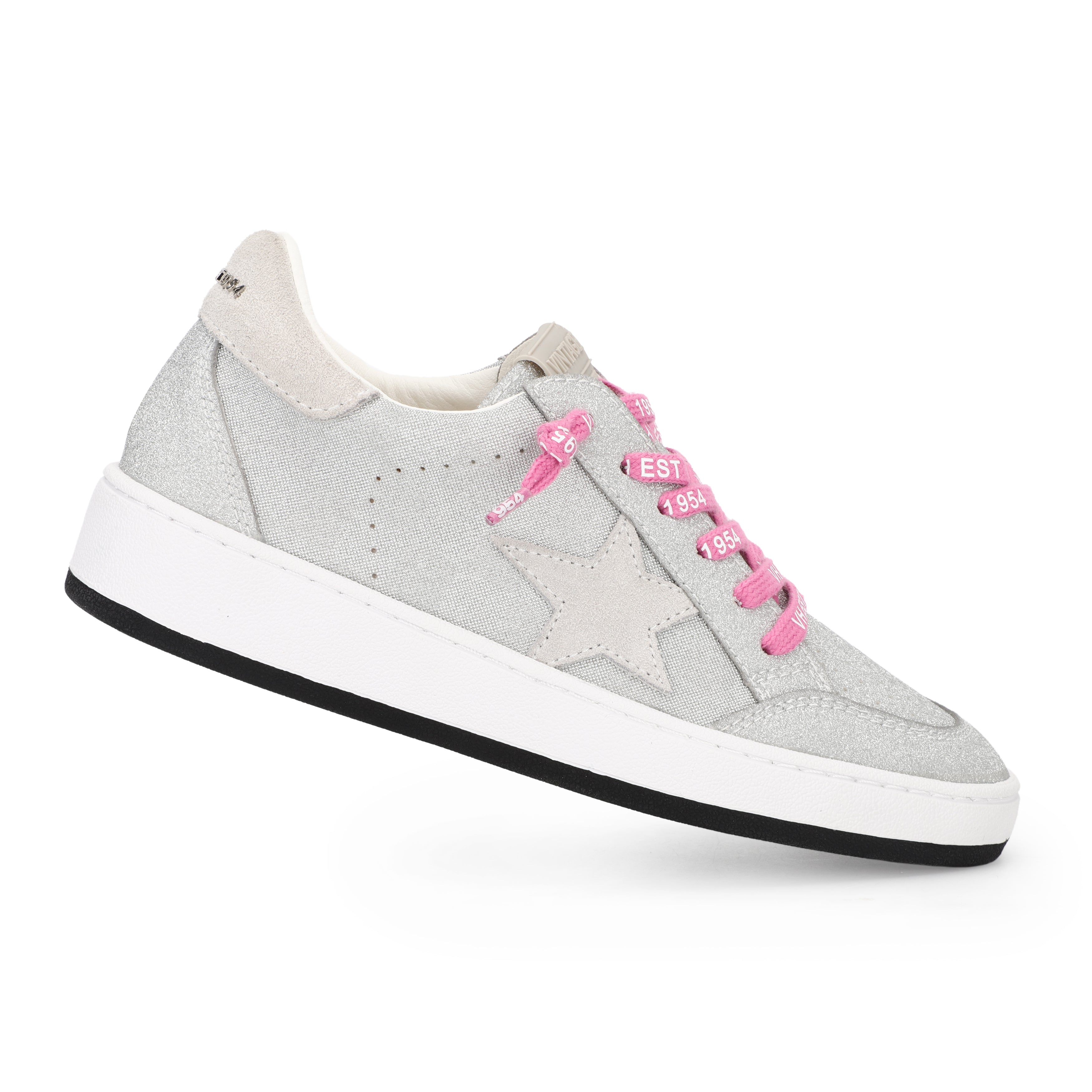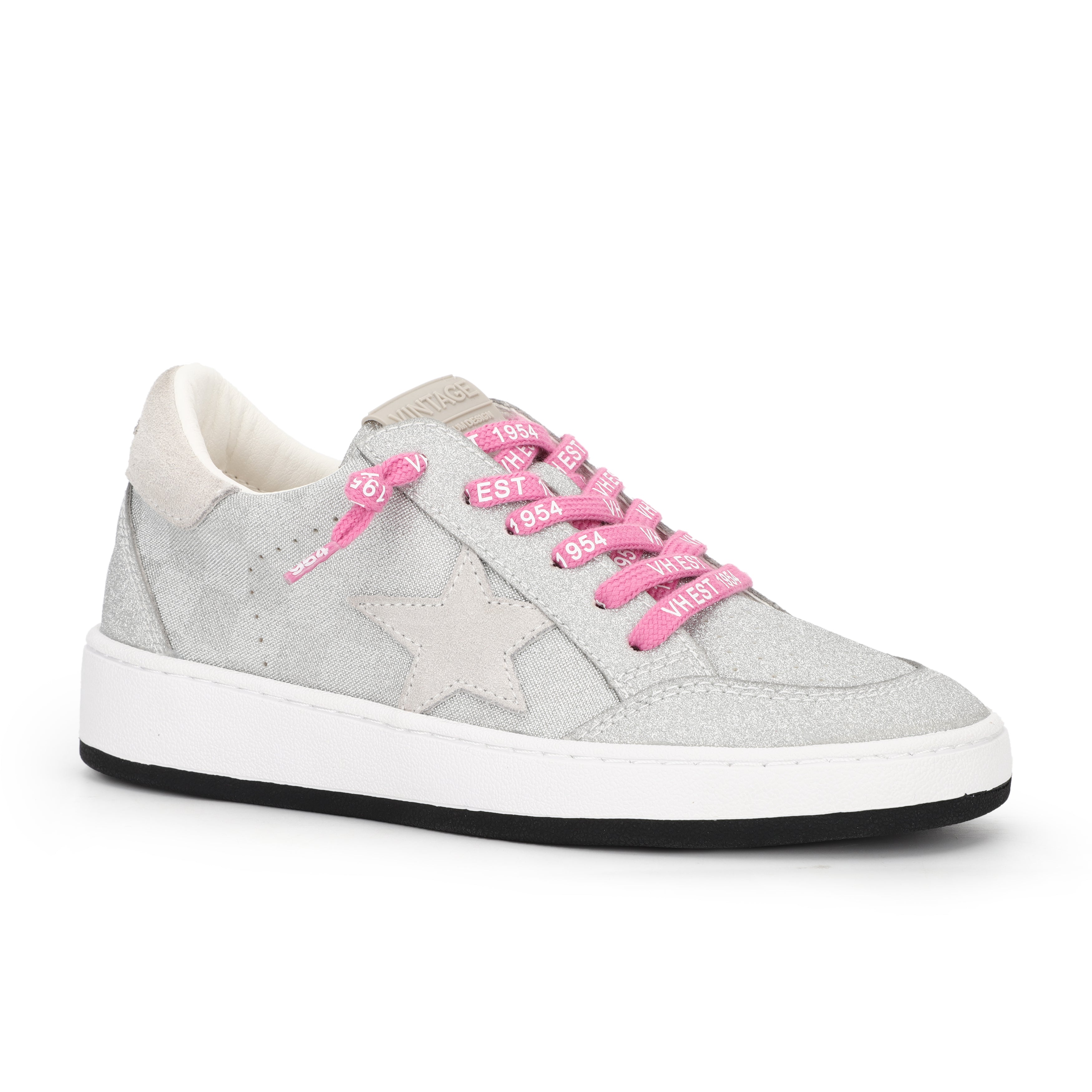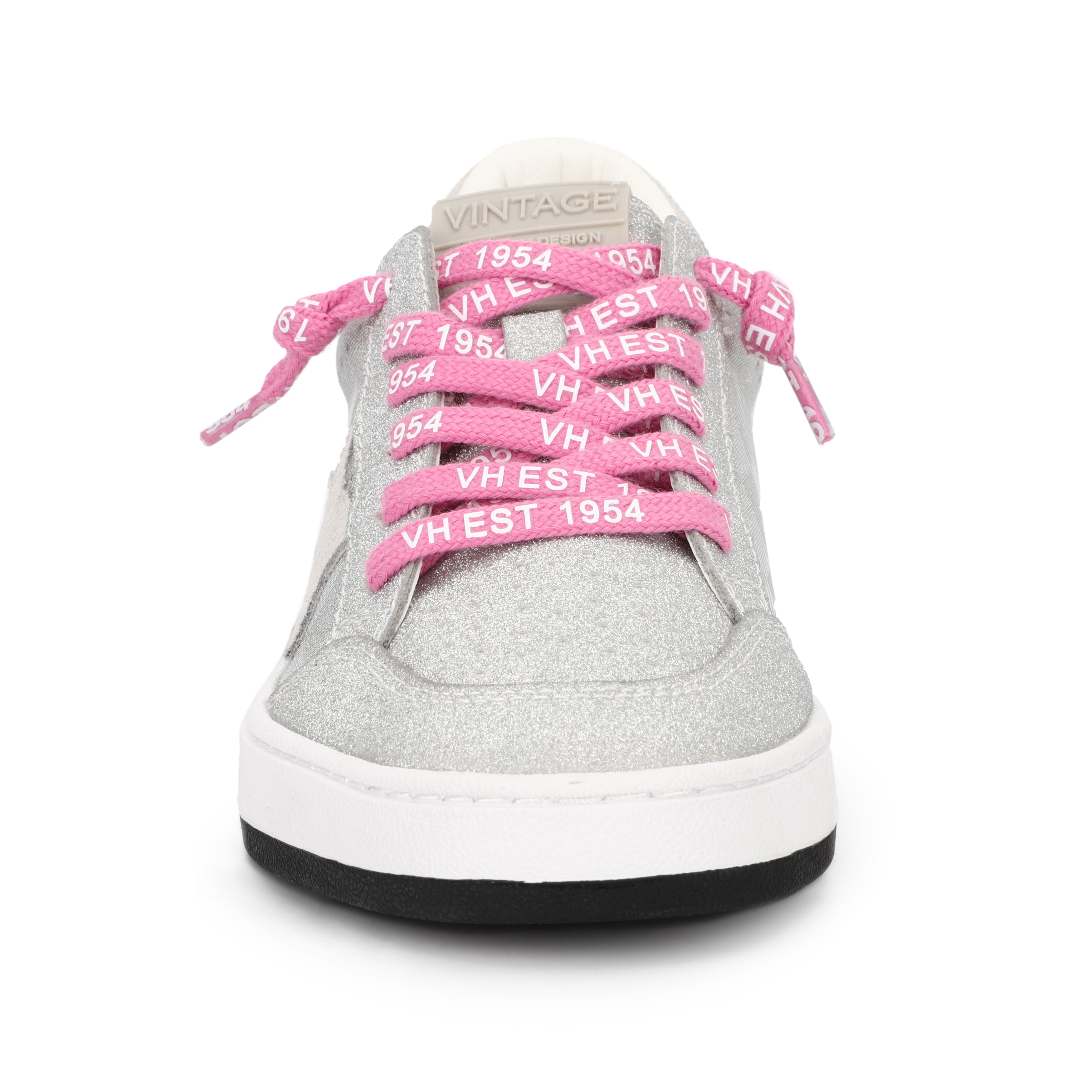 Harlow Metallic Silver Checkered with Pink Laces Vintage Havana Low Top