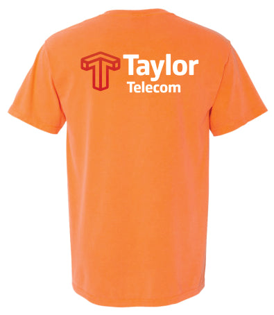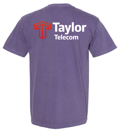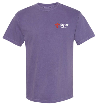 Taylor Telecom Comfort Colors short-sleeve t-shirt with Taylor Telecom logo screen printed on the left chest and full back. Available in 3 colors.